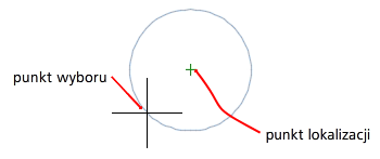 Lokalizuje do punktu przecięcia obiektów, takich jak atrybut, blok lub tekst.