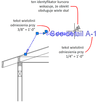Poniższa ilustracja przedstawia wielolinię odniesienia, do której przypisano dwie różne skale obiektu.