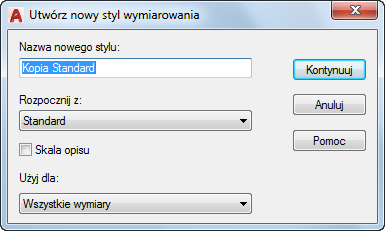 Nadaje nazwę nowemu stylowi wymiarowania, ustala styl, na którym będzie oparty tworzony nowy styl i wskazuje typy wymiarów, których ma dotyczyć nowy styl.
