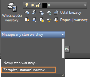 Bieżące ustawienia warstwy można zapisać jako stan warstw, który można później przywrócić lub zaimportować do innych rysunków. Stan warstw jest podobny do zdjęcia istniejących warstw i ustawień warstw zrobionego w czasie tworzenia stanu warstw.
