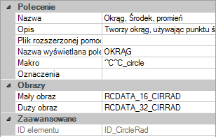 Poniżej znajduje się przykładowa rozszerzona etykieta narzędzia utworzona do stosowania w produkcie opartym na programie AutoCAD 2009. Należy zmienić tekst pogrubiony i zapisany kursywą.