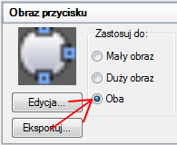 W panelu Obraz przycisku, w obszarze Zastosuj do wybierz jedną z trzech opcji przypisania: Mały obraz, Duży obraz lub Obydwa.