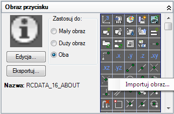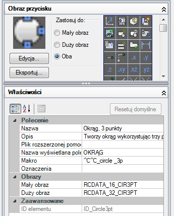 Wybierz obraz z listy obrazów, a jego nazwa zostanie przypisana do właściwości obrazu Mały obraz i/lub Duży obraz wybranego polecenia.