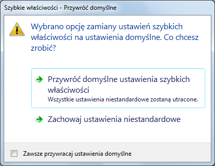 Aby przywrócić domyślne ustawienia szybkich właściwości