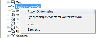 - Na karcie Dostosuj, na panelu Dostosowywane pliki: <nazwa pliku> kliknij prawym przyciskiem myszy opcję Szybkie właściwości.