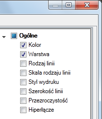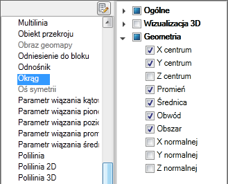 Jeśli typ obiektu jest zaznaczony, właściwości tego typu obiektu są wyświetlane na palecie Szybkie właściwości, gdy: wybrany jest obiekt tego samego typu, w zmiennej systemowej QPMODE ustawiona jest wartość 2 i włączona jest zmienna systemowa PICKFIRST. Usuń znacznik znajdujący się obok typu obiektu, aby usunąć wybrany typ obiektu z palety Szybkie właściwości.