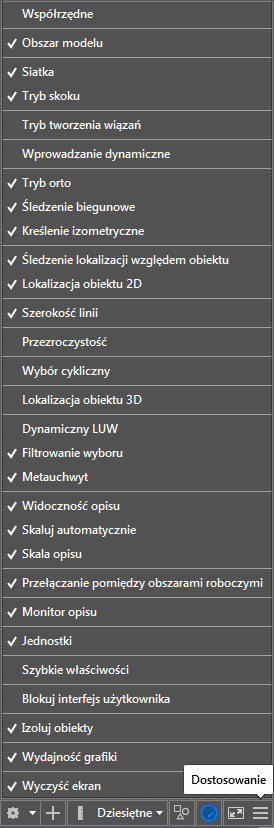 Aby zmienić sposób wyświetlania współrzędnych w pasku stanu