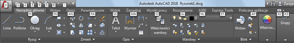 Używając klawiatury, można uzyskać dostęp do menu aplikacji, paska narzędzi szybkiego dostępu i wstążki.