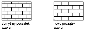 Domyślnie dopasowanie (wyrównanie) i orientacja wzoru kreskowania są określane przez punkt początkowy i orientację LUW (lokalnego układu współrzędnych), ale można zmienić te ustawienia.