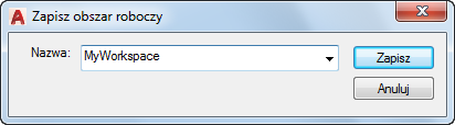 W oknie dialogowym Zapisz obszar roboczy w polu Nazwa wprowadź nazwę, aby utworzyć nowy obszar roboczy lub wybrać z listy rozwijanej obszar, który zostanie zastąpiony.
