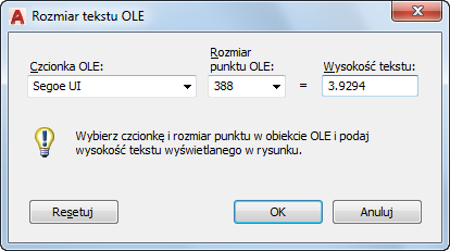 Obiekt OLE zostanie automatycznie przeskalowany, stosowanie do rozmiaru tekstu.