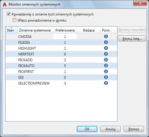 - Powiadamiaj o zmianie tych zmiennych systemowych