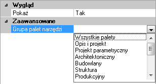 - W polu Grupa palet narzędzi wybierz jedną z dostępnych grup palet narzędzi, aby powiązać ją z kartą wstążki.