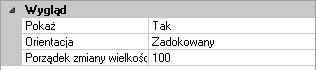 - Na panelu Właściwości kliknij pole Orientacja i z listy rozwijanej wybierz opcję Powyżej wstążki lub Poniżej wstążki.