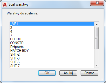 Określa, które warstwy mają zostać scalone w inną warstwę. Aby wybrać więcej niż jedną warstwę, naciśnij i przytrzymaj klawisz Ctrl, a następnie kliknij żądane warstwy.