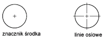 Tworzy niezespolony znacznik środka lub osie symetrii okręgów i łuków.