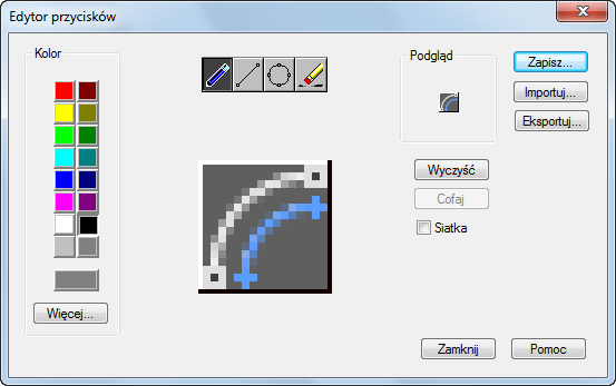 Tworzy linie z użyciem bieżącego koloru. Kliknij i przeciągnij, aby określić punkt początkowy i narysować linię. Zwolnij przycisk aby zakończyć linię.