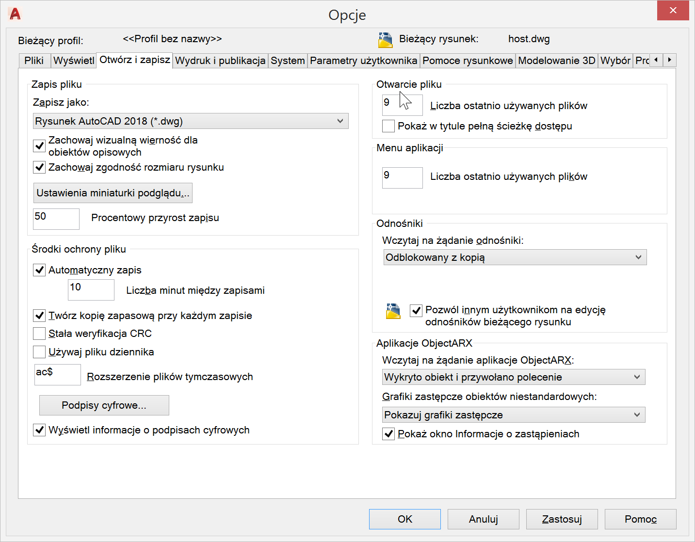 Steruje ustawieniami, które mają związek z aplikacjami ARX (AutoCAD Runtime Extension) i grafiką proxy.