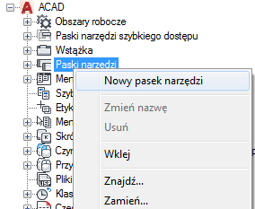 Nowy pasek narzędzi (o nazwie Paseknarzędzi1) zostanie umieszczony na dole drzewa Paski narzędzi.