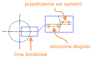 Można kontrolować wielkość znacznika środka oraz skalę i czcionkę przedłużeń linii środkowej. Można również wyłączyć przedłużenie linii środkowej.