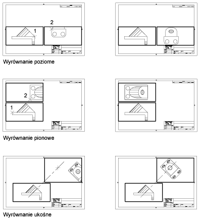 Elementy rysunku można ustawić przez wyrównanie widoku w jednej rzutni układu do widoku innej rzutni.