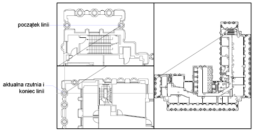 - Ustaw inną rzutnię jako bieżącą, klikając wewnątrz niej, a następnie określ drugi punkt końcowy linii.