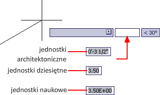 Dostępnych jest kilka powszechnie stosowanych konwencji określających format i dokładność współrzędnych i odległości liniowych wyświetlanych na palecie Właściwości, przy wprowadzaniu dynamicznym, na pasku stanu i w innych miejscach.