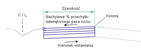 Za pomocą tego podzespołu tworzona jest reprezentacja przekroju poprzecznego pasa ruchu wstawianego od wewnętrznej krawędzi nawierzchni drogi w kierunku punktu korony.