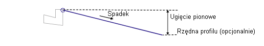 Połączenie dodawane jest od punktu dołączenia w kierunku wstawienia przy określonym nachyleniu aż do osiągnięcia określonej rzędnej. Jeśli w czasie wykonywania określono nazwę profilu, ugięcie pionowe jest dopasowywane do rzędnej profilu.