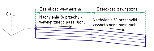 Domyślne nachylenie pasów wewnętrznych używane, gdy nie zdefiniowano przechyłki linii trasowania. |