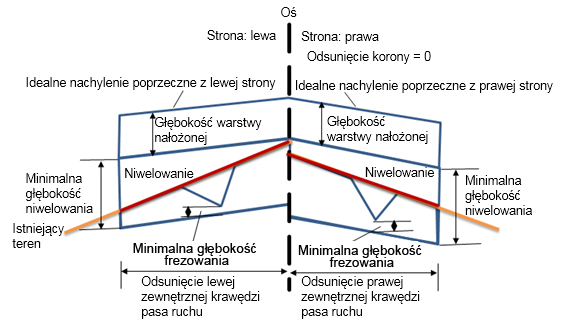 | Minimalna głębokość frezowania z lewej strony | Minimalna głębokość frezowania pomiędzy istniejącą powierzchnią a spodem warstwy nałożonej z lewej strony | Liczbowy, dodatni | 0,300 m |