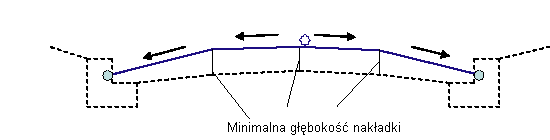Odległość pomiędzy lewym i prawym punktem kołnierzowym jest dzielona przez cztery, w wyniku czego otrzymuje się dwa punkty podziału na cztery części i punkt korony. Rzędne tych punktów są obliczane przez dodanie minimalnej głębokości warstwy nałożonej do istniejącego terenu przy tych odsunięciach.