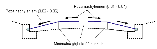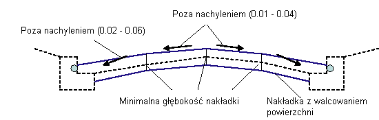 Jeśli połączenia warstwy nałożonej są zbyt płytkie, zwiększana jest głębokość warstwy nałożonej w celu zachowania minimalnych nachyleń. Jeśli skutkuje to zbyt dużą różnicą nachyleń, mogą nastąpić dalsze dopasowania i frezowania. Poniżej przedstawiono przypadek warstwy nałożonej z frezowaniem.