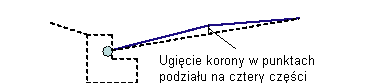 Minimalne ugięcie korony w punktach podziału na cztery części. |