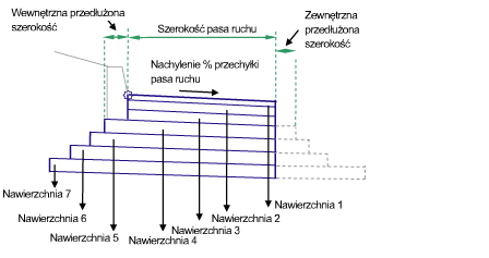 Za pomocą tego podzespołu tworzona jest przekrojowa reprezentacja wielowarstwowego pasa ruchu. Warstwy mogą mieć różne szerokości. Zastosowana zostaje również wartość nachylenia przechyłki zewnętrznego pasa ruchu dla linii trasowania linii bazowej modelu korytarza.