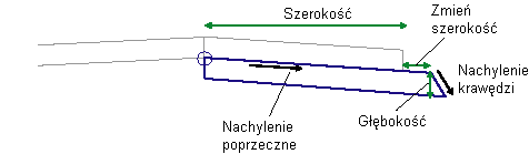| Kierunek nachylenia | Określa, czy nawierzchnia drogi jest nachylona w kierunku korony, czy od korony | Lista wyboru | Z dala od korony |