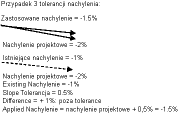 Dopuszczalna wartość, o którą mogą różnić się Nachylenia warstwy nałożonej od ich wartości projektowych. Tolerancja nachylenia nie jest używana, gdy Nachylenie warstwy nałożonej dane jest jako M (szczegóły w podanym poniżej Zachowaniu). |