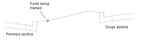 Poniższy przykład przedstawia dwie jezdnie o niezależnych profilach. Podczas tworzenia połączeń pierwszej jezdni oznaczany jest punkt znajdujący się na lewej, zewnętrznej krawędzi. Po utworzeniu połączeń drugiej jezdni można wstawić połączenie biegnące od prawej, zewnętrznej krawędzi wstecz do oznaczonego punktu.
