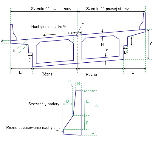 Powoduje uwzględnianie lub pomijanie barier po obu stronach jezdni mostu. |