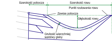 | Szerokość rowu | Określa szerokość rowu od punktu zawiasu pobocza. | Liczbowy, dodatni |