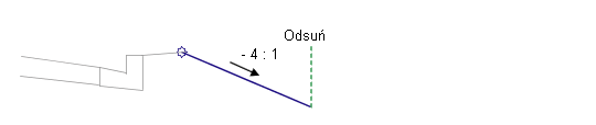 W trybie układu jest wyświetlane przez ten podzespół połączenie rysowane do danego odsunięcia przy nachyleniu -4 : 1. Połączenie zakończone jest grotem strzałki skierowanej na zewnątrz.