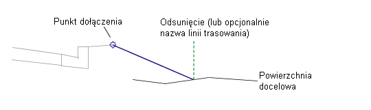 Można używać do zastąpienia stałego odsunięcia i łączenia końca połączenia z linią trasowania odsunięcia. Następujące typy obiektów można zastosować jako obiekty docelowe do określania tego odsunięcia: linie trasowania, polilinie, linie charakterystyczne lub figury pomiarowe. |