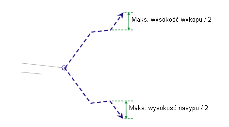 Punkt zawiasu dla warunku wykopu lub nasypu. Stosowany jest tylko do wewnętrznej krawędzi rzeczywistego połączenia rzutowania. |