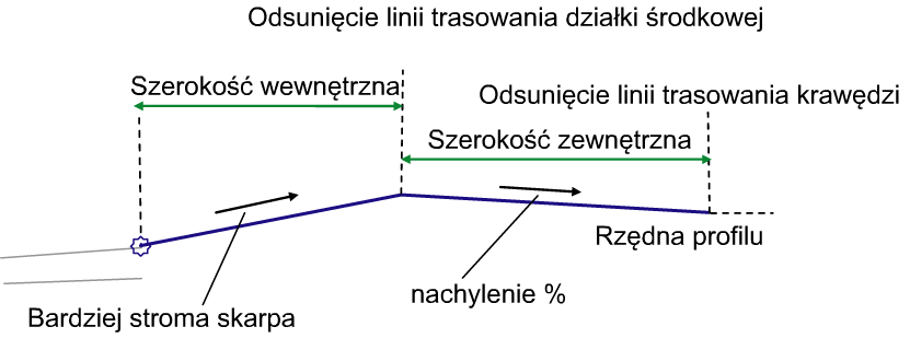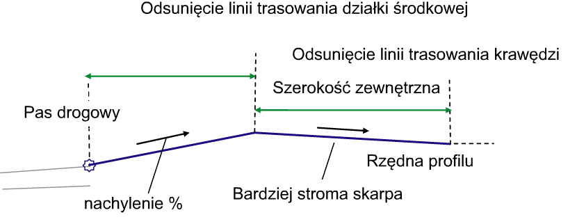 W trybie układu pas ruchu rysowany jest przez ten podzespół na podstawie parametrów wejściowych. Zostanie użyta wartość 1% jako nachylenie bardziej strome.
