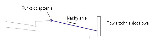 Połączenie jest wydłużane przy określonym nachyleniu w lewo lub prawo od punktu dołączenia do przecięcia powierzchni docelowej.