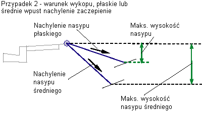 Nachylenie nasypu tworzone, gdy wartość parametru Nachylenie nasypu średniego przekracza wartość Maks. wysokość nasypu średniego |