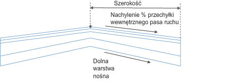 | Nachylenie warstwy podstawowej % | Określa nachylenie materiałów warstwy podstawowej i nośnej. Wartość w przechyłce zostanie obliczona jako różnica między nachyleniem domyślnym i nachyleniem warstwy podstawowej, która następnie zostanie dodana do wartości przechyłki. | Liczbowy | -3.0 |