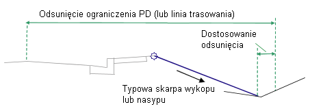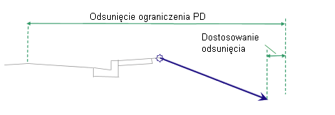 Odsunięcie rzutowania obliczane jest jako Odsunięcie granicy PD plus/minus Dostosowanie odsunięcia. Połączenie rzutowania wstawiane jest od punktu dołączenia do obliczonego odsunięcia na powierzchni docelowej.