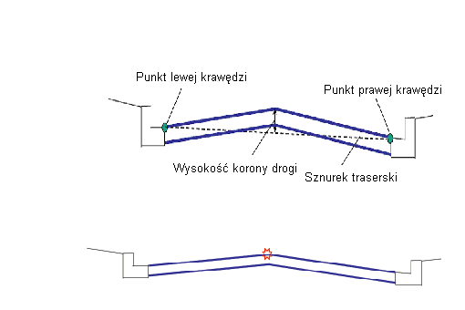 Punkt korony (odsunięcie) znajduje się w połowie odległości między lewą a prawą krawędzią nawierzchni drogi.
