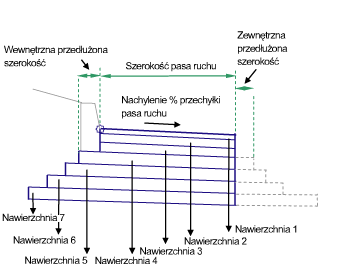 | Szerokość pasa ruchu | Szerokość pasa od odsunięcia krawędzi wewnętrznej do odsunięcia krawędzi zewnętrznej. | Liczbowy, dodatni |